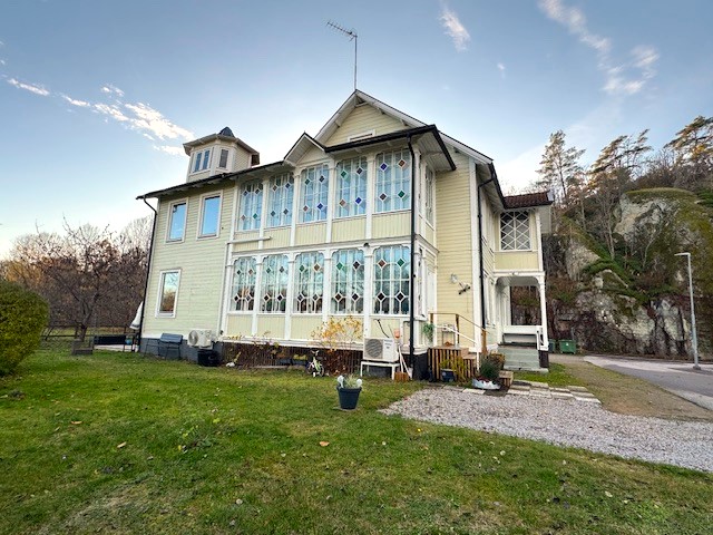 Hyresfastighet i pampigt utförande byggt i stil med brunnsvillorna. Innehåller fyra lägenheter på totalt 240 m² boyta.